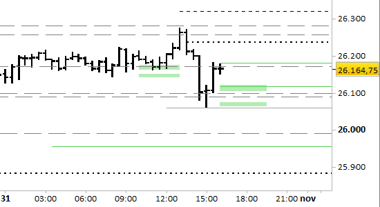 Apriamo long su ritorni a 26126.25; stop-e-reverse sotto 26060.00, senza attendere alcuna conferma.