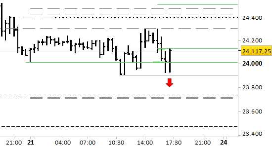 La posizione long aperta a 24183.50 è stata chiusa in stop a 24008.75.