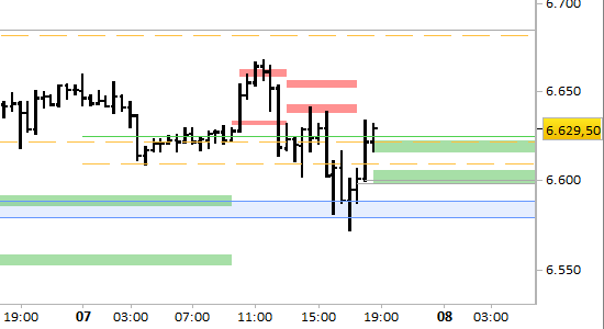 Il segnale ribassista di breve periodo non è più attivo. Si sono infatti formati nuovi supporti validi fino all'aggiornamento di domattina, posti a 6619.00/6621.00 e 6598.00/6600.00, punti di probabile reazione in caso di nuove debolezze.