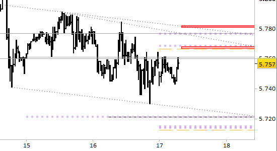 La posizione long aperta ieri a 5731 è stata chiusa in stop a 5711.