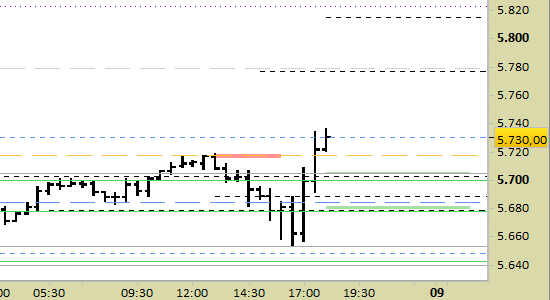 Apriamo long da prezzi non superiori a 5730.00; stop sotto 5678.00 con una chiusura su grafico a 30 minuti.
