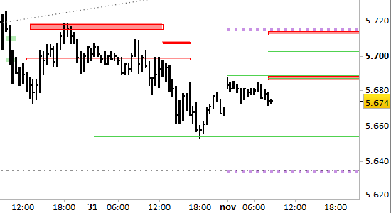 Apriamo short su ritorni a 5683; stop sopra 5716 senza attendere alcuna conferma.