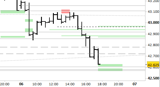 Il segnale tecnico è long a mercato con obiettivo 42835. Stop sotto 42570 senza attendere alcuna conferma.