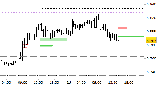 Il segnale tecnico è short a mercato e su ritorni alla prima resistenza. Stop sopra 5806 senza attendere alcuna conferma.