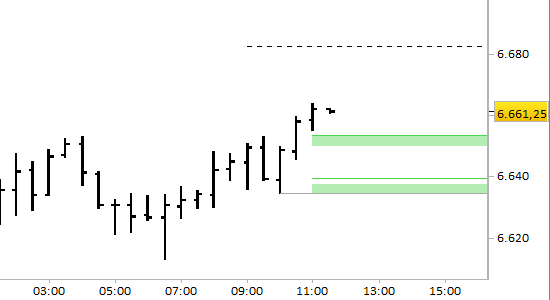 Apriamo long su ritorni a 6654.75; stop sotto 6634.50 senza attendere alcuna conferma.