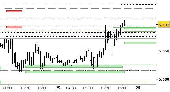 Le proiezioni sono rialziste fino a 5632, passando per la resistenza intermedia di quota 5606.