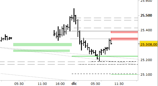 Le resistenze si trovano a 25340.00 e 25389.00/396.00.