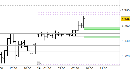 Apriamo long su ritorni a 5764; stop sotto 5744 senza attendere alcuna conferma.
