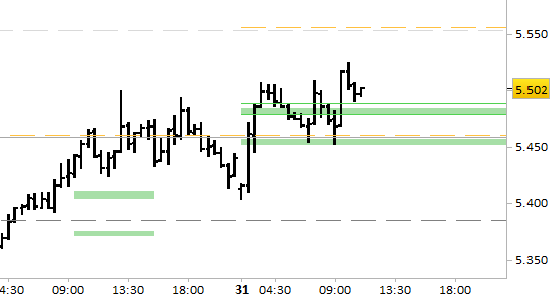 Si sono formati supporti fino al prossimo bollettino posti a 5485 e 5450. Le aspettative sono di rialzo fino a 5554/5556. Il segnale long rimane attivo solo con prezzi stabilmente superiori a 5450.