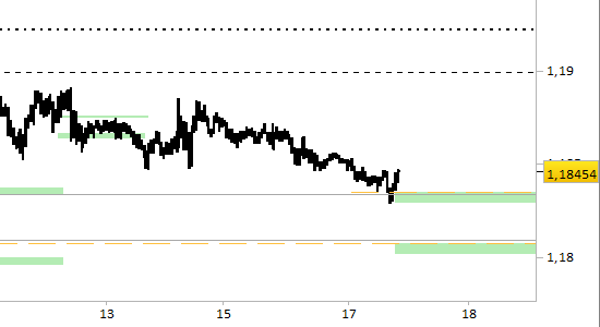 cross eur/usd, grafico a barre da 30 minuti. Prezzi al 17/02/26, ore 10.24, last 1.1845