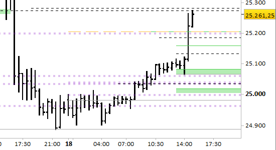 La posizione long aperta a 25095.75 è stata chiusa sul target principale a 25197.00.