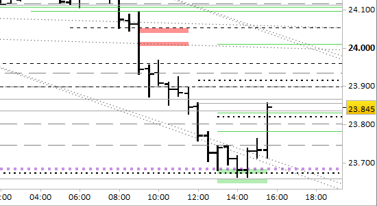 La posizione long aperta a 23710 è stata chiusa sul target principale a 23820.