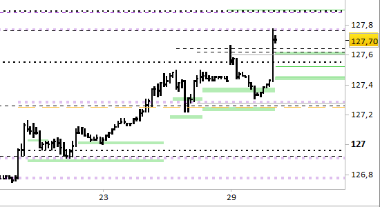I supporti si sono alzati fino a 127.60/62 e 127.43/46.