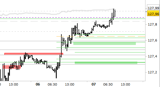 Liquidiamo a mercato la posizione long aperta ieri a 127.68.