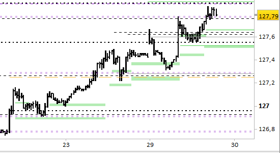 I prezzi sono riusciti a spingersi al rialzo solo fino a 127.86.