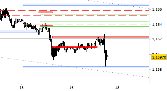 I prezzi hanno effettuato un ultimo inatteso guizzo rialzista a 1.1627 prima di arretrare a 1.1584.