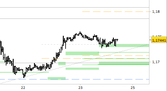 I prezzi sono ancora in stabilizzazione sopra il primo supporto daily e non ci sono modifiche allo scenario di brevissimo periodo. I supporti sono fermi a 1.1735 e 1.1695, punti di probabile reazione. La tendenza è rialzista ed i prossimi livelli di verifica si trovano sulle resistenze/target a 1.1797 e 1.1830. Solo prezzi stabilmente inferiori a 1.1695 potrebbero imporre una revisione delle aspettative con i prossimi aggiornamenti.