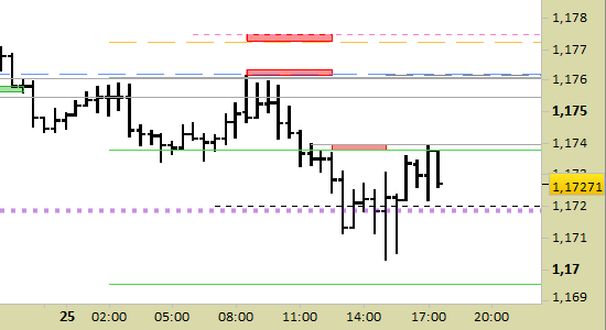 Lo spazio fra 1.1740 (resistenza) e 1.1718/20 (supèporto) è area di verifica, da cui dobbiamo attendere la formazione di nuovi segnali.