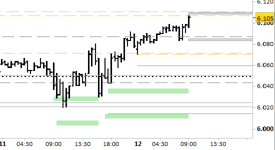 future Eurostoxx50, grafico a barre da 30 minuti. Prezzi fino al 12/02/26, ore 9.10, last 6105