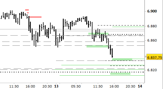 I prezzi si stanno dirigendo verso i supporti, punti di probabile ripartenza del rialzo, posti a 6833.00/35.00 e 6812.50/16.00.
