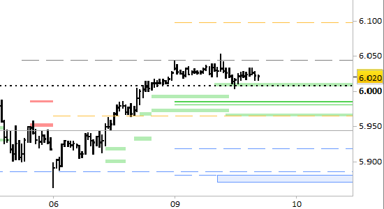 Per quanto riguarda il brevissimo periodo (= fino a domani) confermiamo una robusta resistenza intermedia posta a 6043/45. Lo spazio fra i supporti a 6007/6010 e 5963/68 e la resistenza è zona di probabile accumulazione. Le proiezioni indicano un obiettivo a 6097. Il segnale long verrebbe rivisto solo con prezzi stabilmente inferiori a 5963.