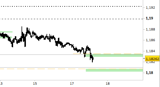 cross eur/usd, grafico a barre da 30 minuti. Prezzi al 17/02/26, ore 14.42, last 1.1826