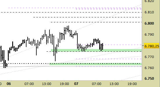 I supporti sono fermi da ieri a 6775.00/77.00 e 6762.50/64.50, punti di probabile reazione.