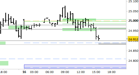 La violazione ribassista di 24950 ha interrotto il segnale rialzista di brevissimo periodo. Con riferimento alle prossime ore, si è formata un’area di probabile stabilizzazione fra 24880 (supporto) e 24965 (resistenza). Dobbiamo attendere indicazioni di ripresa della spinta rialzista dal test di questi livelli. Rimaniamo in osservazione.
