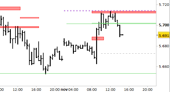 I prezzi sono stati respinti dalla resistenza principale a 5710/5716.