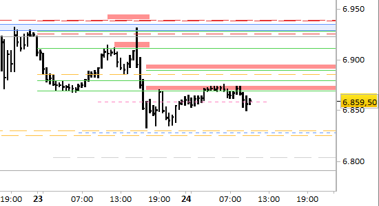 Nessuna modifica da segnalare rispetto all'ultimo commento di ieri. Le resistenze di brevissimo periodo, valide per la sessione odierna, sono confermate a 6870.00 e 6895.00. Le proiezioni di brevissimo sono ancora ribassiste fino a 6828.00 e 6805.00. Il segnale short in vigore è valido solo con prezzi stabilmente inferiori a 6895.00.