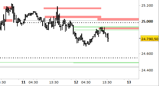 Confermiamo il target principale a 1-2 sedute a 24554.00. I prezzi sono stati respinti dalla zona delle resistenze, ferme a 24900.00/910.00 e 25030.00/040.00, punti di ripiegamento anche in caso di nuovi recuperi. Il segnale short di breve periodo rimane attivo con prezzi stabilmente inferiori a 25040.00.