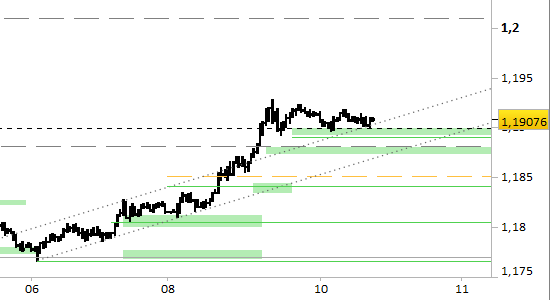 Con riferimento alle prossime ore (= brevissimo periodo) i supporti di maggior rilievo sono fermi a 1.1890 e 1.1870. Il segnale rialzista è ancora attivo. Le proiezioni forniscono un target a 1.2000 alla portata dei valori potenzialmente in giornata. Il segnale rimane attivo con prezzi superiori a 1.1870.