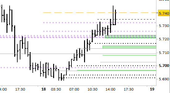 Lo spazio fra 5746 e 5725 è probabile zona di stabilizzazione, attendiamo nuovi segnali.