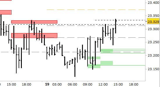 La posizione long aperta a 23233 è stata chiusa sul target a 23333.