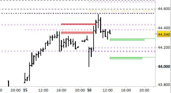 La posizione short aperta ieri a 44280 è stata chiusa in stop a 44465.
