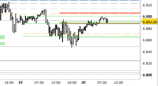 I prezzi hanno raggiunto ieri minimi a 6847.75 prima di risalire nell'area delle resistenze. È stato intercettato finora solo il primo obiettivo ribassista a 6849.00. Le resistenze di brevissimo periodo (= prossime ore) sono ferme a 6887.00/89.00 e 6910.00, e i prezzi si trovano ancora, mentre scriviamo, in zona di probabile ripiegamento. È ancora attivo un segnale ribassista fino a 6829.00; il segnale è valido solo con rilevazioni stabilmente inferiori a 6910.00.
