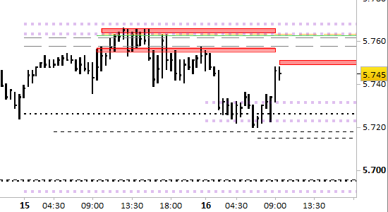Le potenzialità di raggiungimento anche del target principale a 5696 poggiano sulla tenuta della nuova resistenza a 5749/751.