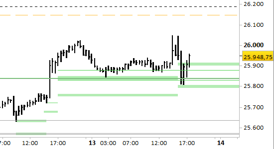 I prezzi hanno effettuato l'attesa reazione dalla zona dei supporti, fermi fino a domattina a 25900.00/910.00 e 25794.50/99.50.