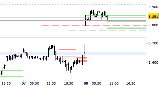 Attendiamo un riavvicinamento ai nuovi supporti di quota 5820/23 e 5780/82, seguito da un nuovo rialzo fino a 5912.