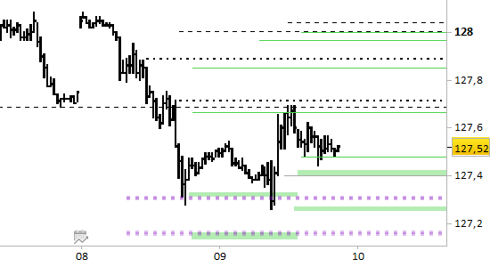 Conserviamo la posizione long aperta ieri a 127.45; stop sotto 127.25 senza attendere alcuna conferma.