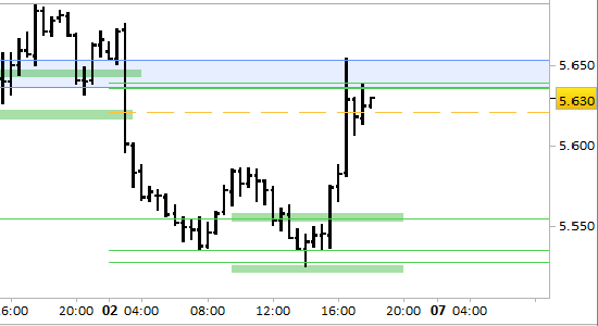 I prezzi sono saliti da 5525 a 5655, intercettando entrambi gli obiettivi a 5621 e 5650.