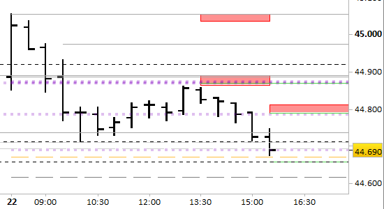 Conserviamo la posizione short aperta a 44825. Stop sopra 44810 senza attendere alcuna conferma.