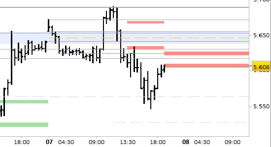 Le resistenze si sono abbassate fino all'aggiornamento di domattina a 5606/5609 e 5622/5625.