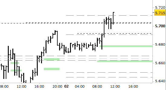 La posizione long aperta a 5680 è stata chiusa sul target a 5703.