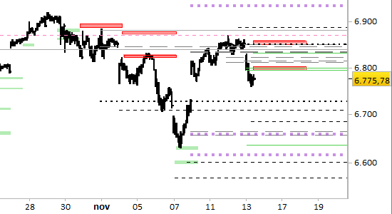 Si sono invece nel contempo formate nuove resistenze a 6796.00/6802.50 e 6851.00/6861.00, che sono da intendere come punti di probabile ripiegamento in caso di recuperi.