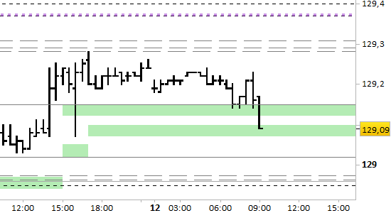 Conserviamo la posizione long aperta ieri a 129.04; stop su semplice ritorno dei valori a 129.04.