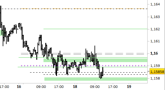 cross eur/usd, grafico a barre da 30 minuti. Prezzi al 18/11/25, ore 12.49, last 1.1585