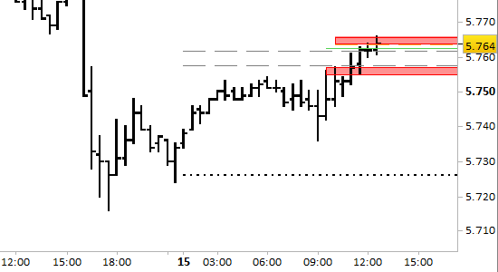 Conserviamo la posizione short aperta a 5747. Stop sopra 5766 senza attendere alcuna conferma.