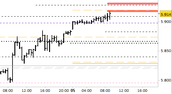 Il segnale è short a mercato e su test della prima resistenza. Stop sopra 5932 senza attendere alcuna conferma.