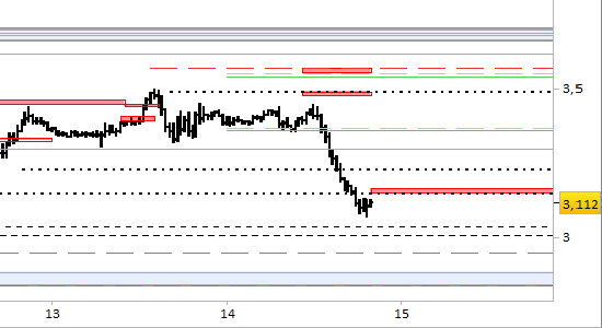 future natural gas, grafico a barre da 30 minuti. Prezzi al 14/01/26, ore 19.15, last 3.112